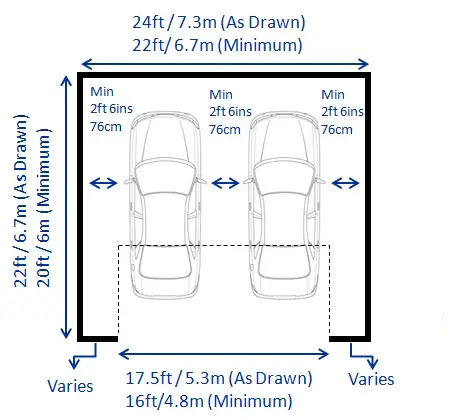 The standard two-car garage sizes in the United States range from 20×20 feet to 28×28 feet. However, it is important to note that sizes may vary in India.
